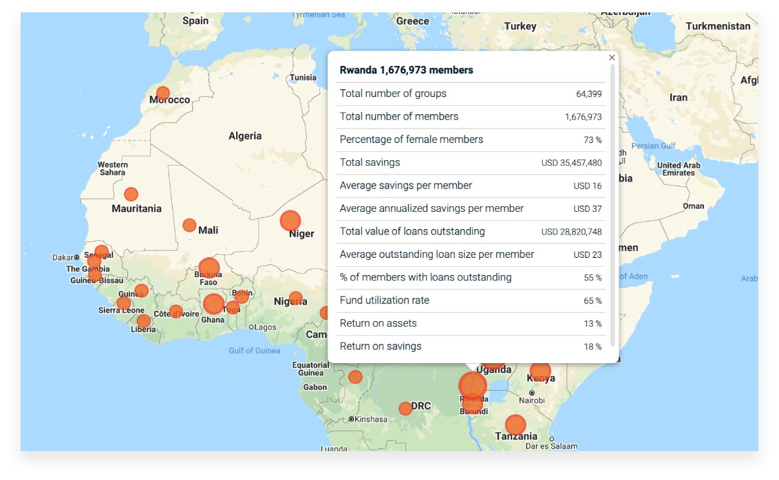 SAVIX is the only reporting system that provides standardised and up-to-date reports on Savings Groups programmes worldwide. By collecting, validating and visualizing financial and operational data from about 600,000 savings groups across Africa, APAC and LATAM, covering 13 million members, it enables benchmarking and informed decision-making, critical for ensuring high-quality programme results and helps to set national, sub-regional and continental norms.